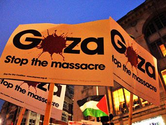 stop the massacre in Gaza” and call for an arms embargo against Israel. This follows last weekend’s huge protest outside the Israeli embassy and campaigns against the BBC’s pro-Israel bias in reporting the assault on Gaza.