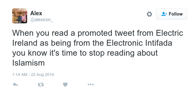 One of his tweets from 2014 sought to smear The Electronic Intifada with “Islamism.”
